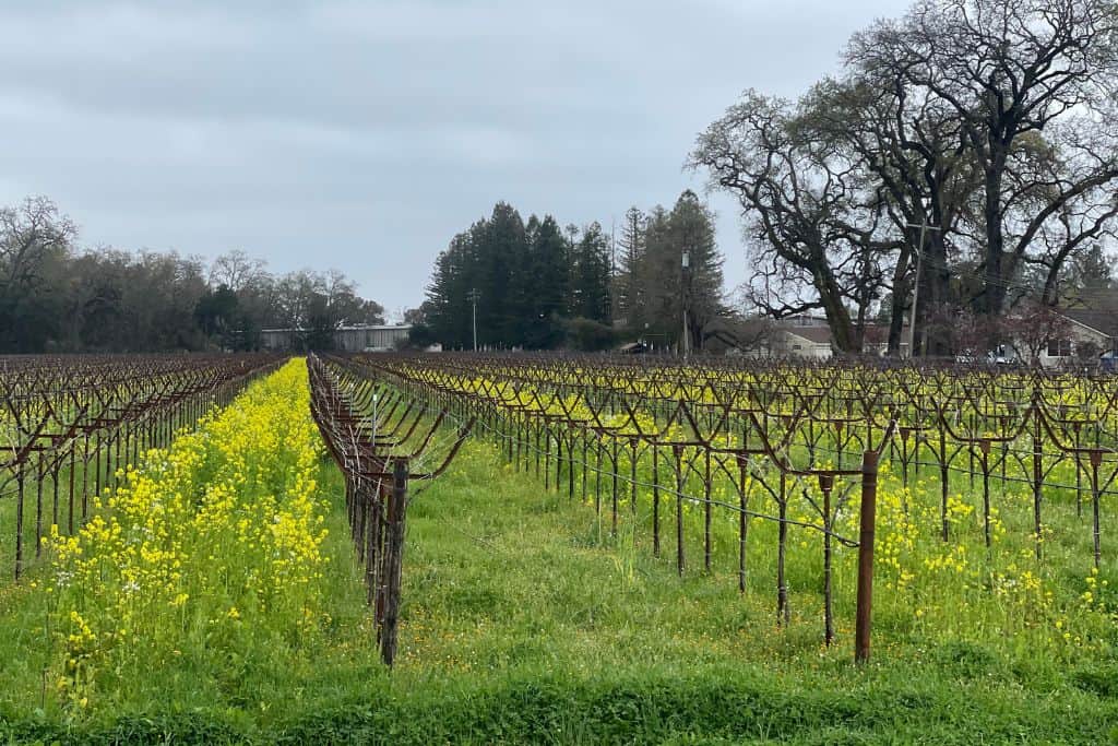You see mustard in Napa because it’s used as a cover crop, helping to prevent soil erosion while enriching the soil with nitrogen, preparing the vineyards for the upcoming growing season.