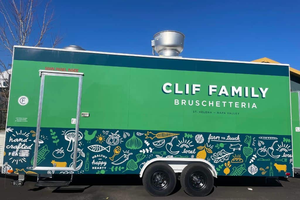 Clif Family Bruschetteria: A food truck serving creative and delicious bruschetta, sides, and salads. Grab a bottle or glass from their tasting room and enjoy it all on the charming patio.
